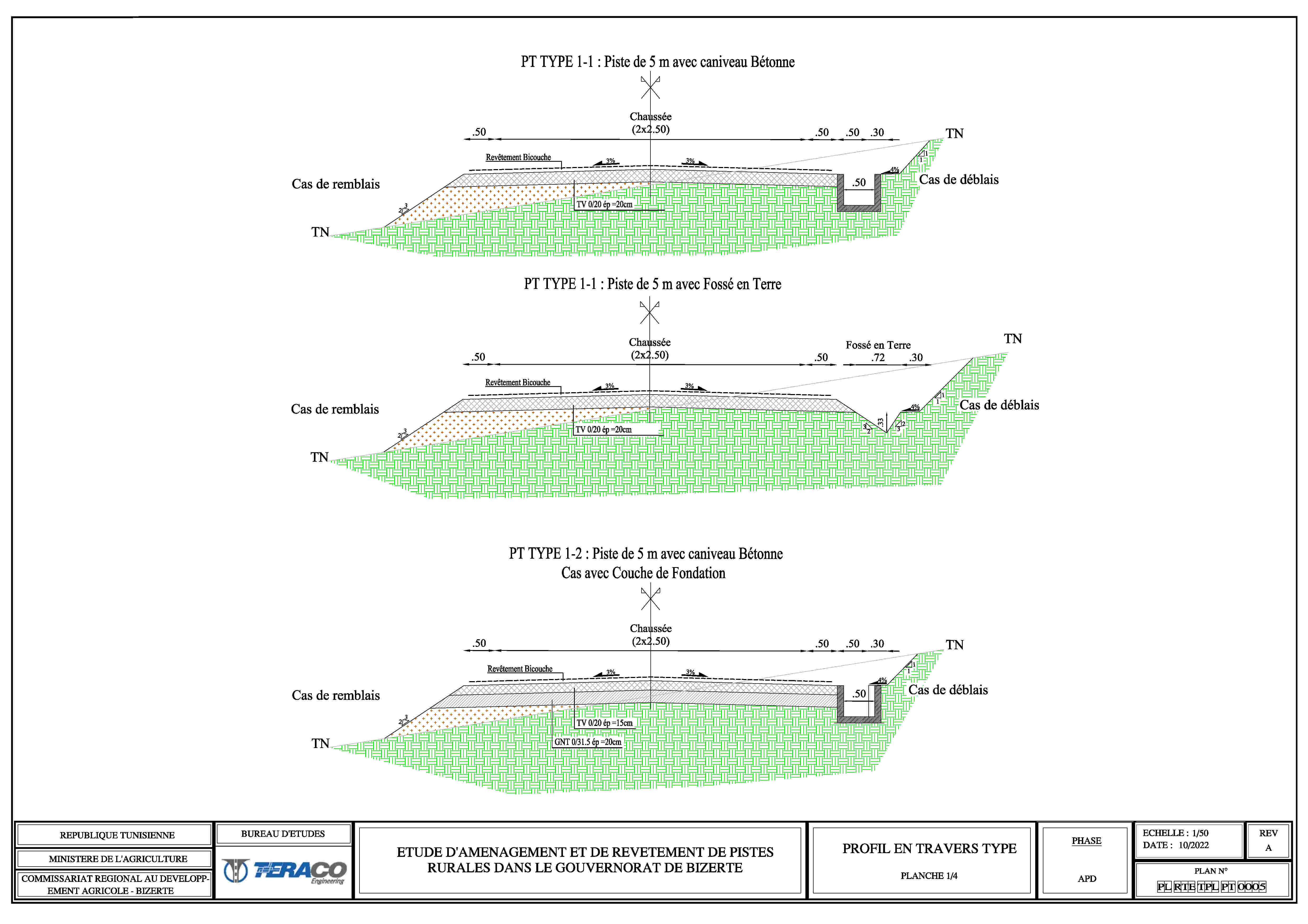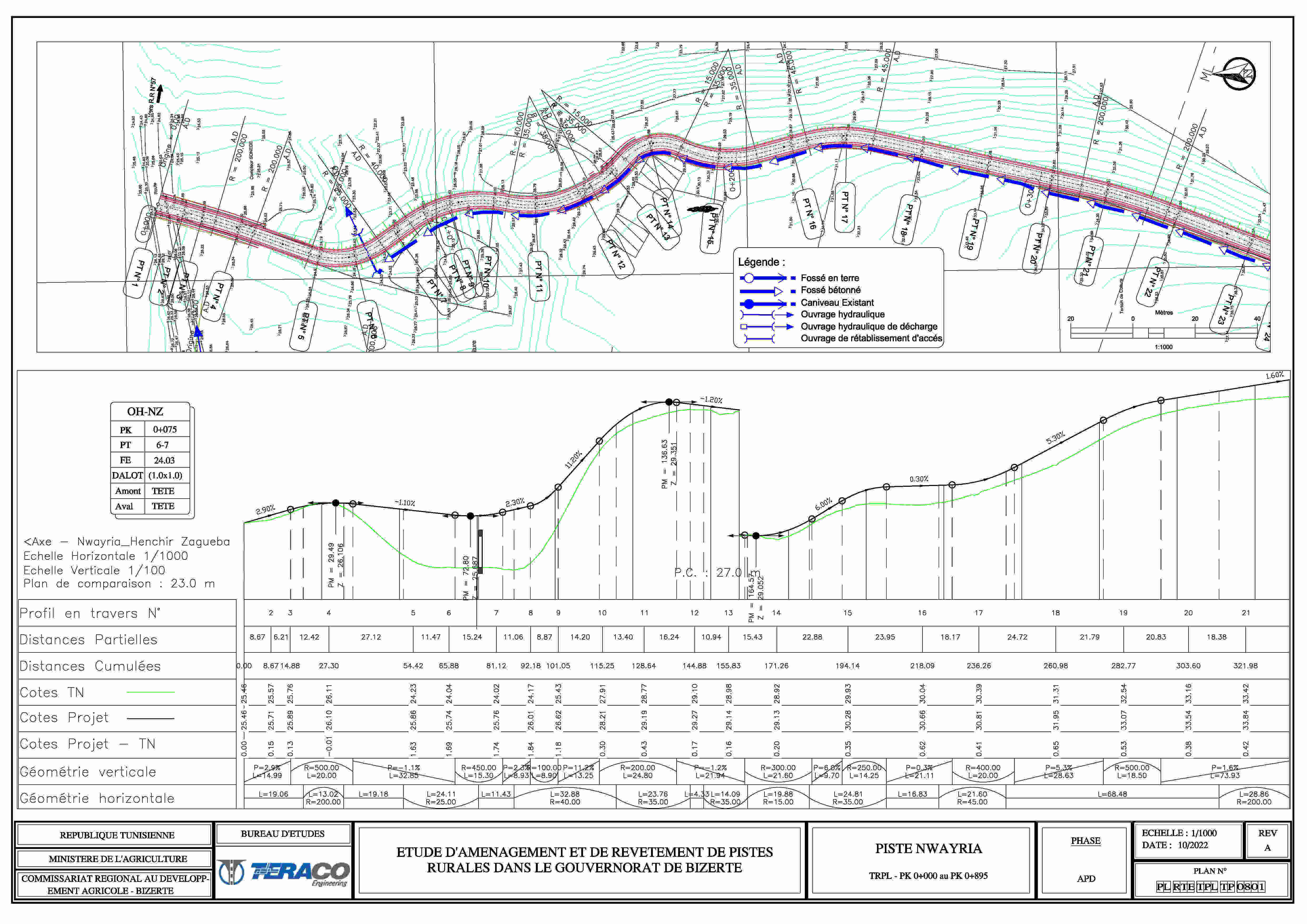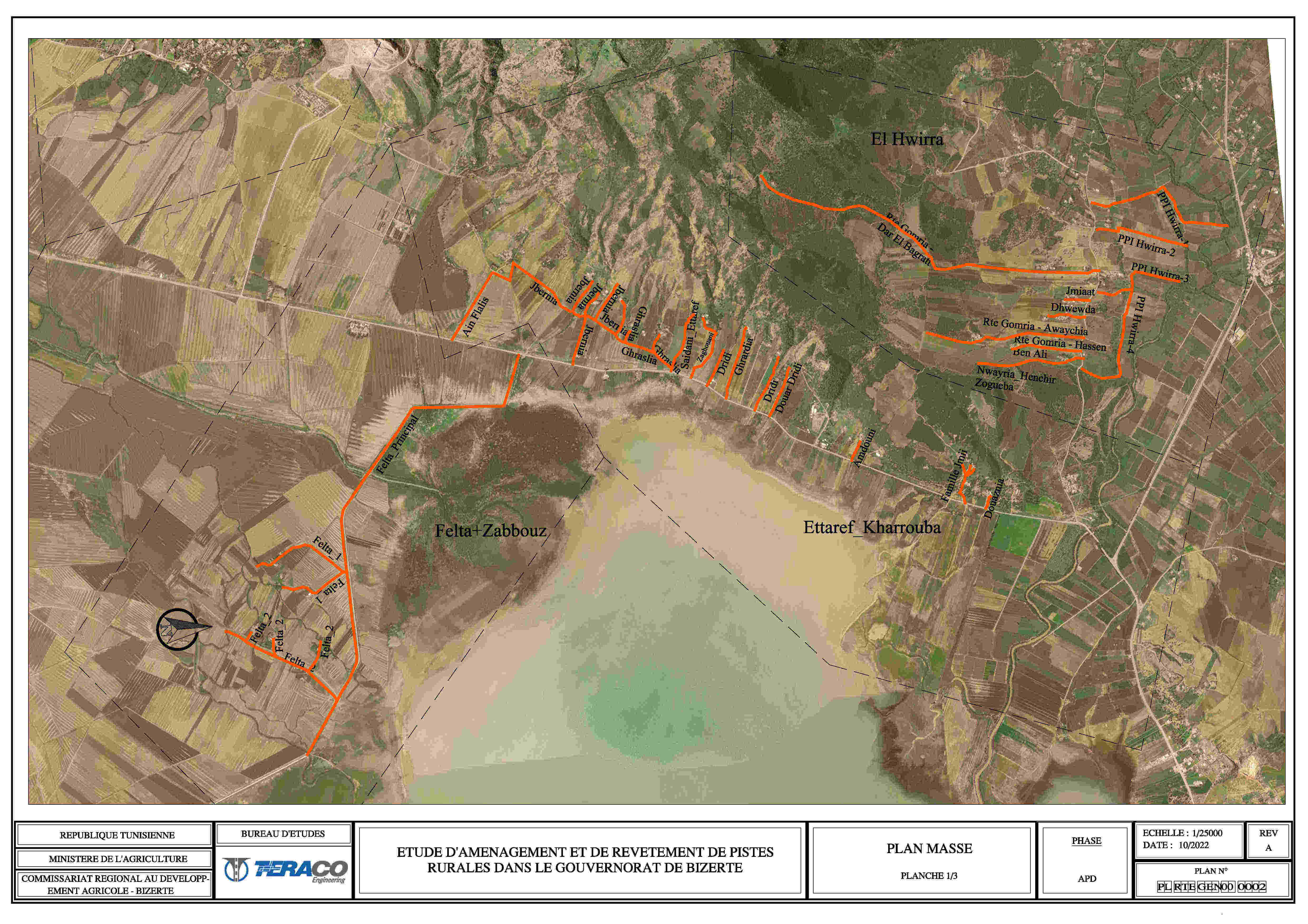 Nous réalisons en ce moment l’étude de 60km de pistes agricoles et d'aménagements ruraux dans la commune de Ghezala Gouvernorat de Bizerte.